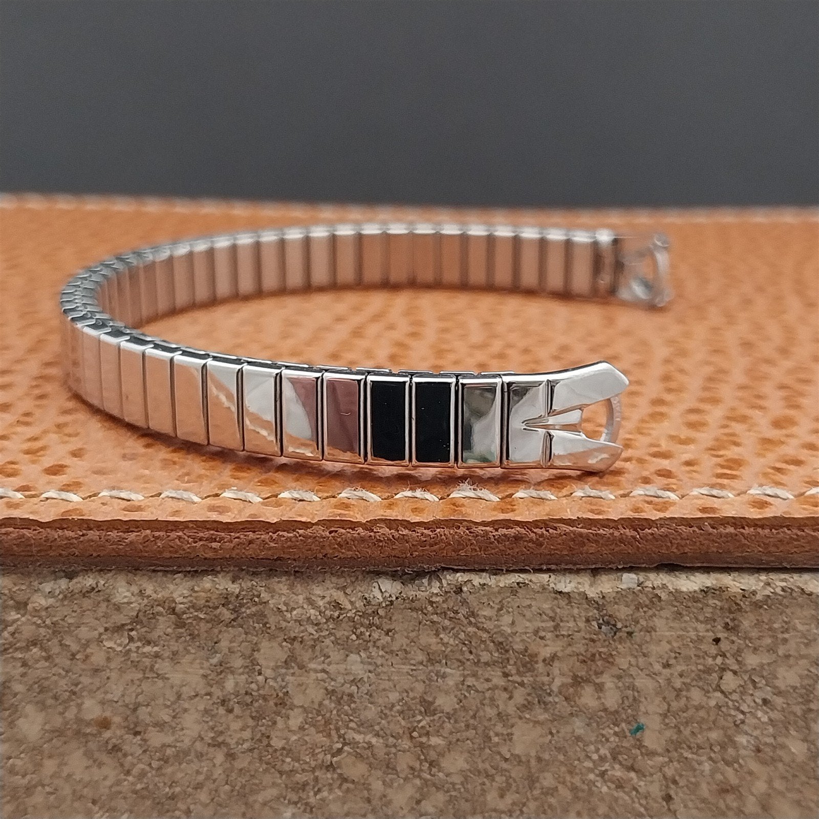 - NOS unused old-stock ladies Speidel Tailored Woman USA made stainless steel classic stretch-expansion cocktail watch bracelet.