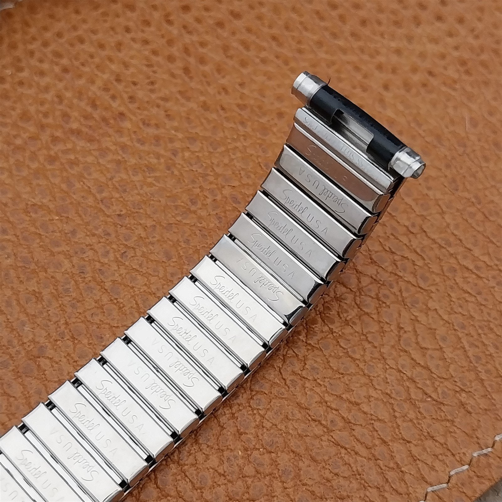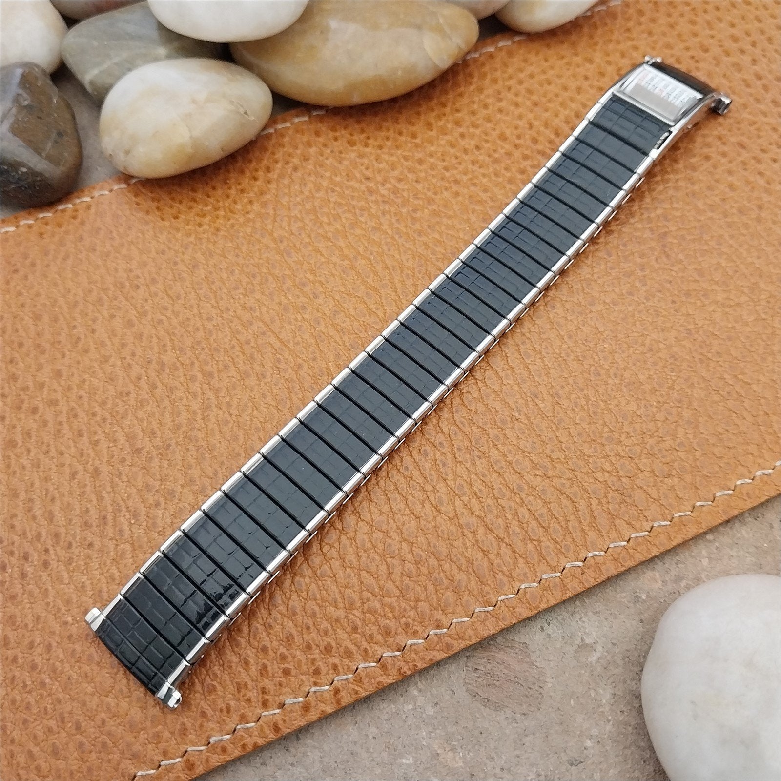 - NOS unused old stock 1970s Speidel Datefinder Romunda black & stainless steel expansion 74/75 calendar watch bracelet.