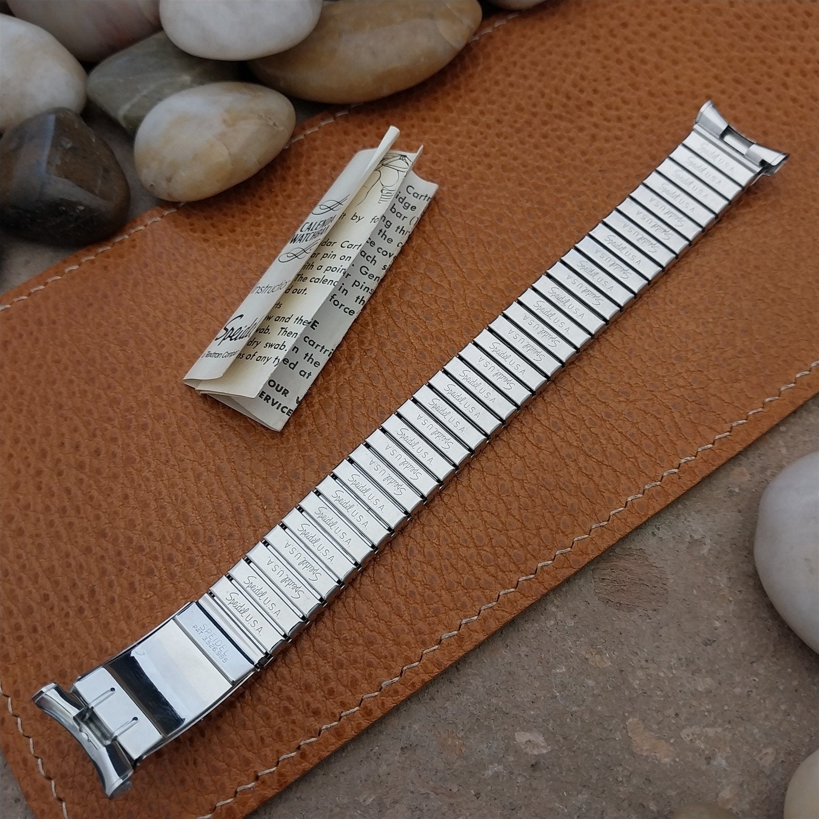 - NOS unused old stock 1960s-1970s Speidel Datefinder Valencia long stainless steel expansion perpetual calendar watch bracelet.