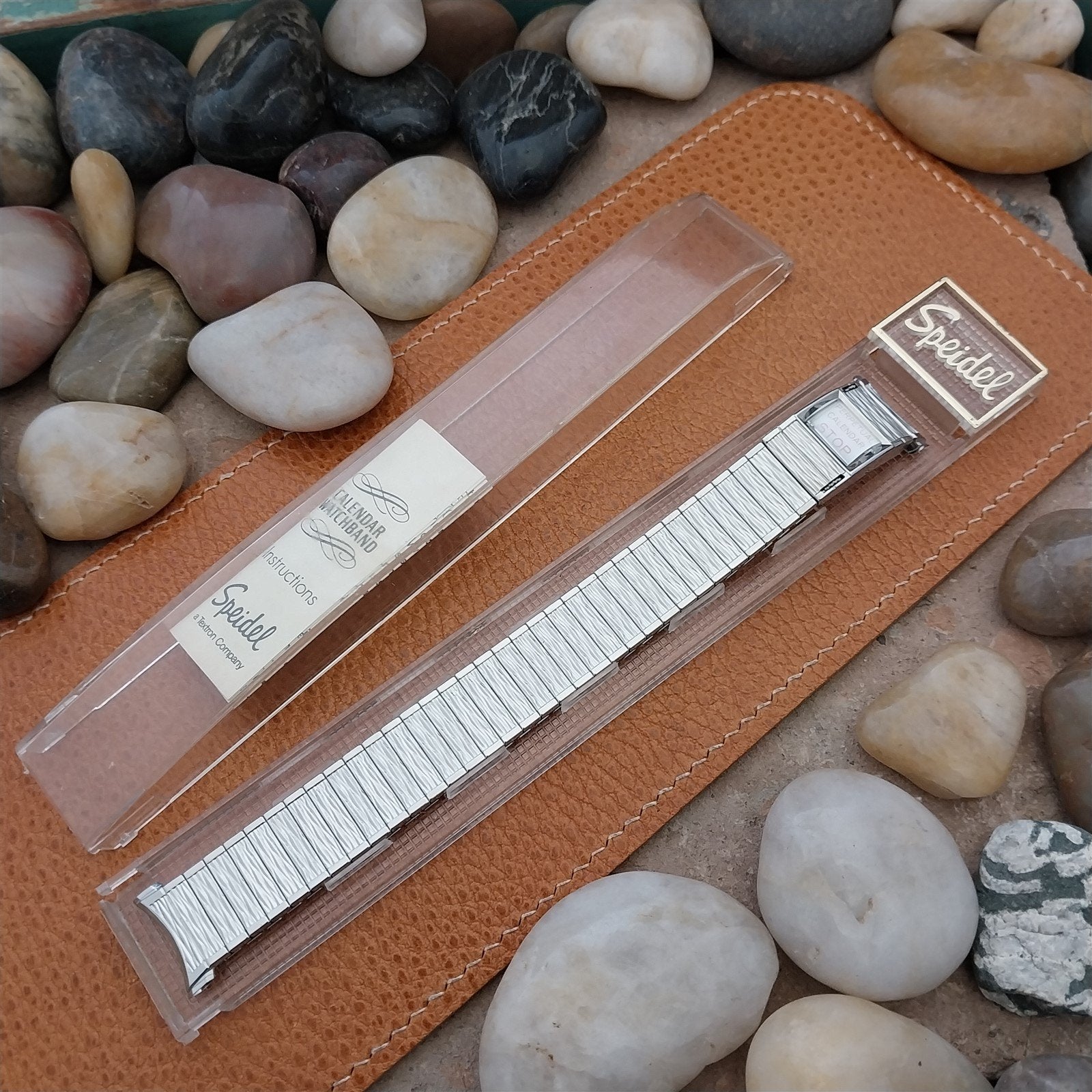 - NOS unused old stock 1960s-1970s Speidel Datefinder Valencia long stainless steel expansion perpetual calendar watch bracelet.