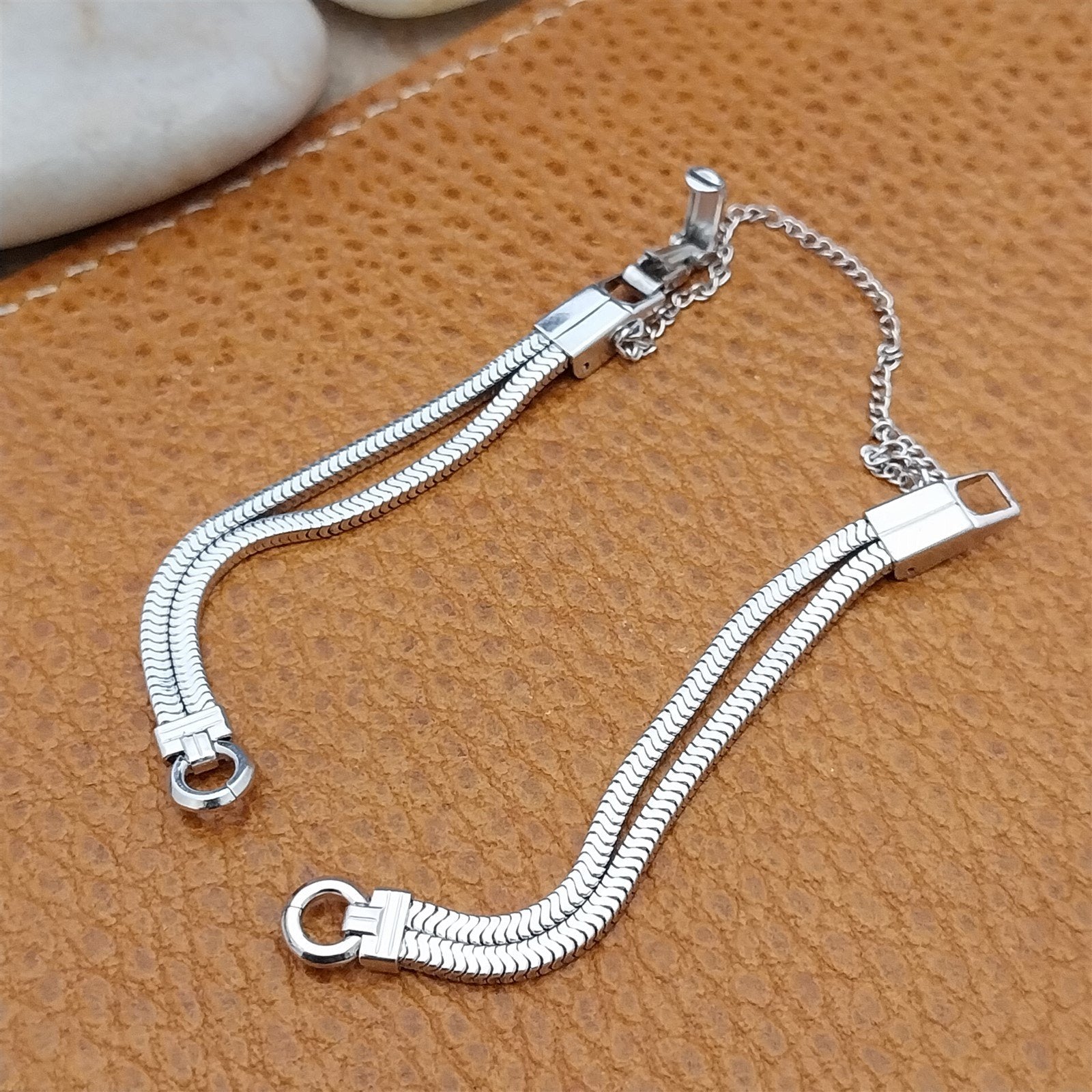 - NOS unused 1960s-1970s old-stock Speidel Sorceress II 10k white gold filled cocktail watch bracelet.