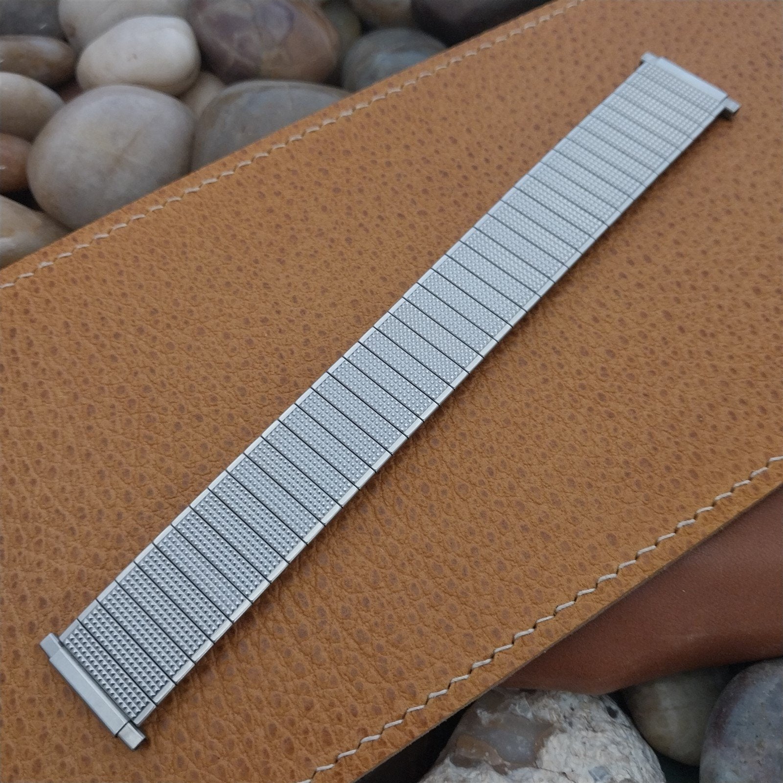 - NOS unused 1970s old-stock Speidel stainless steel Twist-O-Flex expansion watch bracelet.