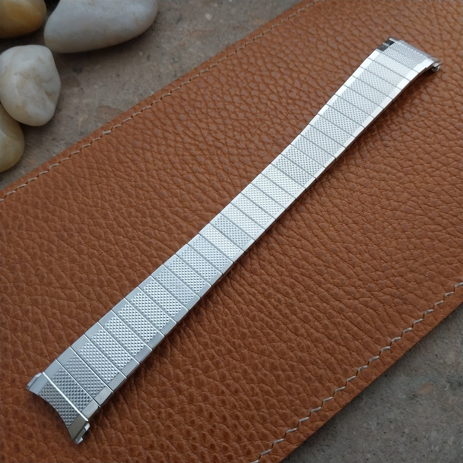 - NOS unused 1970s old-stock Speidel Tapered 10k white gold-filled expansion watch band.