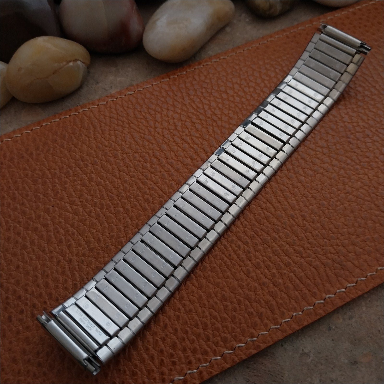 - NOS unused 1970s Brite old-stock stainless steel expansion watch bracelet.