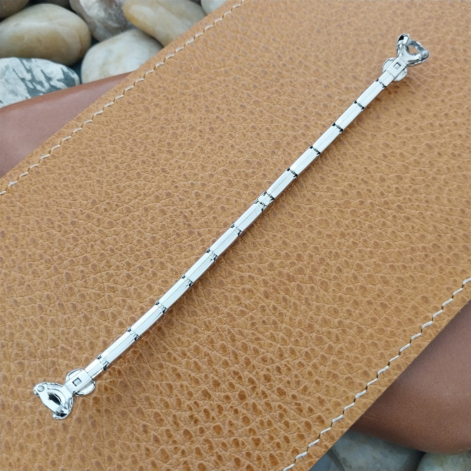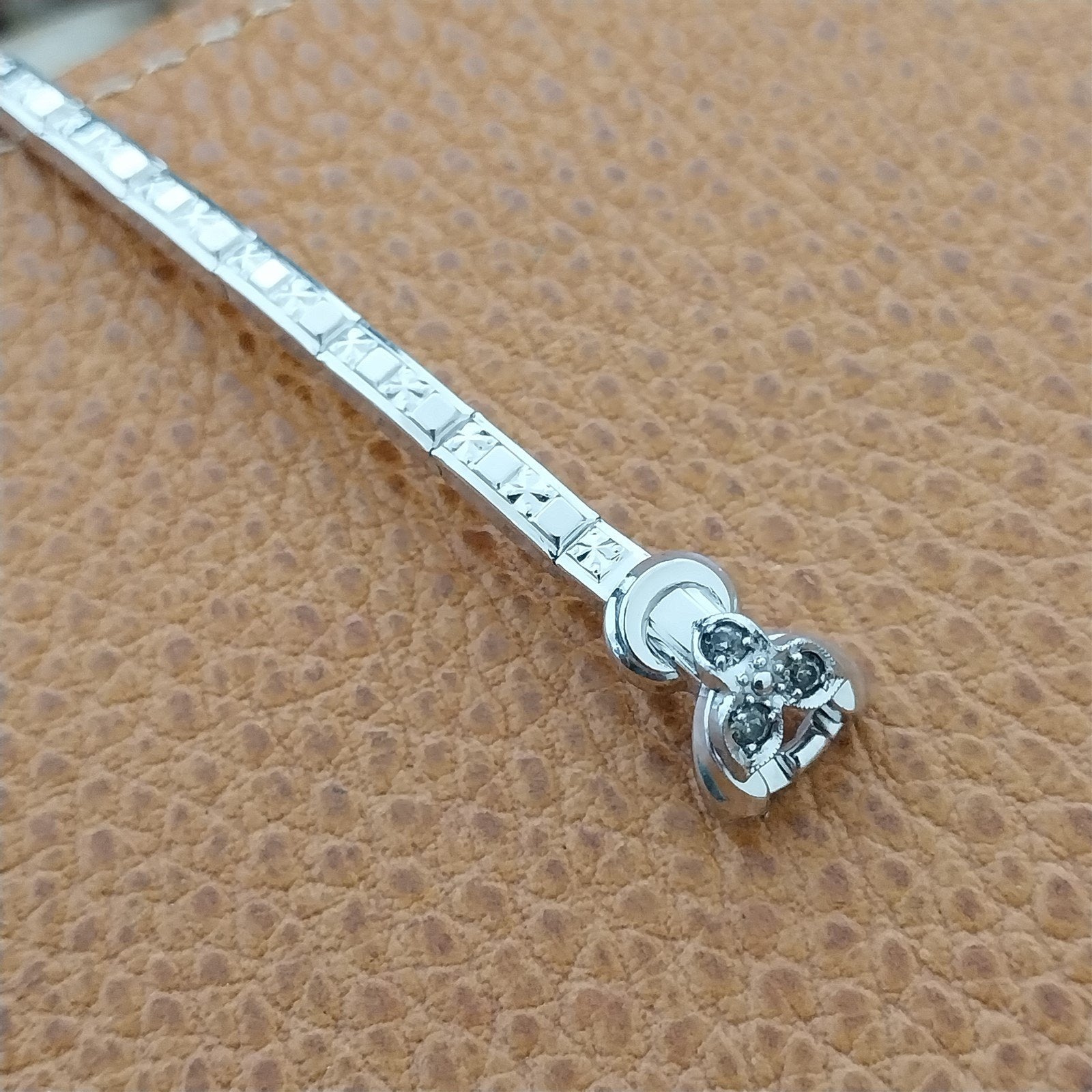 - NOS unused 1950s old-stock Speidel 10k white gold-filled expansion cocktail watch bracelet with rhinestones at the ends.